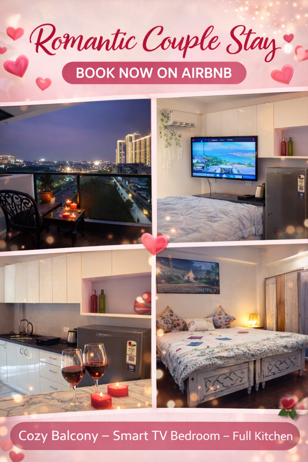 Relax in our cozy modern 1BHK apartment with sunrise view. Ideal for couples, solo travelers, or business guests, this fully furnished space includes a comfy queen bed, Wi-Fi, air conditioning, and a functional kitchen. Close to airport and transport. Safe, quiet, and perfect for short or extended stays! 30 min away from the airport. 30 min away from dwarka sec 21 (blue line) metro station. 40 min away from city center.