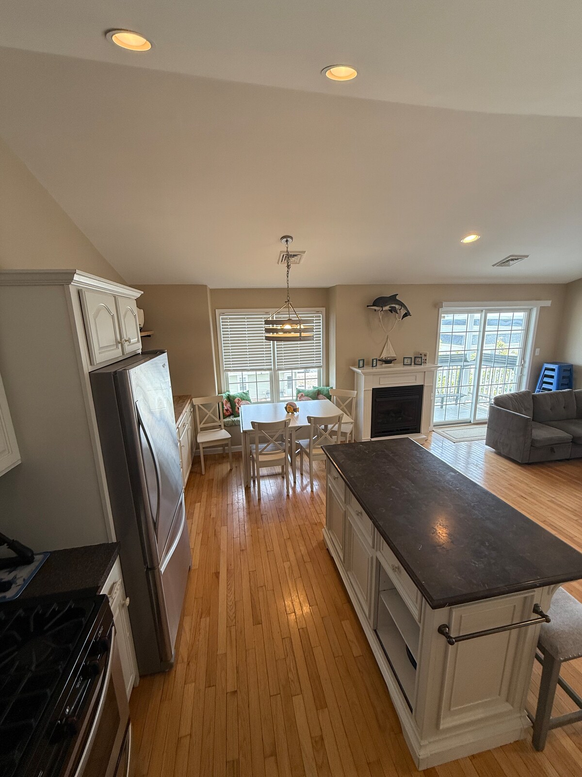 We only rent to families and guests who are 28 and older. Newly renovated open floor plan. Fully equipped kitchen w quartz countertops, 3 high back barstools & dining room table w 5 chairs. Living room with flat screen TV and faux fireplace. Master bdrm w queen bed & private bath w walk in shower. Two more spacious bdrms & full bath. Sleeps 6 adults + toddler bed. Enjoy the private deck & convenience of parking in the 1 car garage. Beach chairs, beach cart, cooler, & umbrella provided.