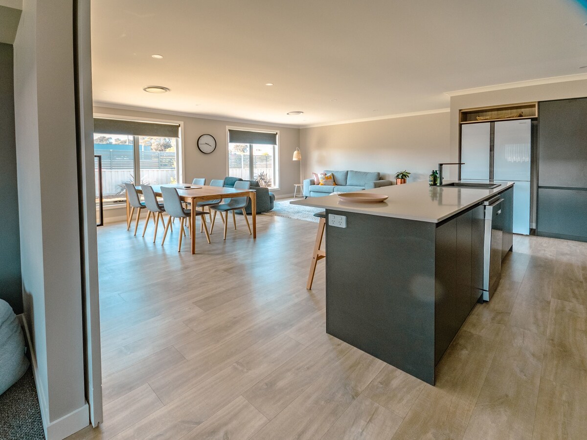 Kick back and relax in this calm, stylish space. A short walk to beautiful swimming & walking beaches. National parks. Fully fenced for children. Outdoor barbecue & entertaining area. Outdoor shower for after the beach. Main bathroom is spa like with huge shower & bath. Efficient heating/ air conditioning. Double glazed windows to keep warm in winter & cool in summer with screens. Smart tv, with internet and study space. Smeg coffee machine, toaster & kettle, great cooking equipment