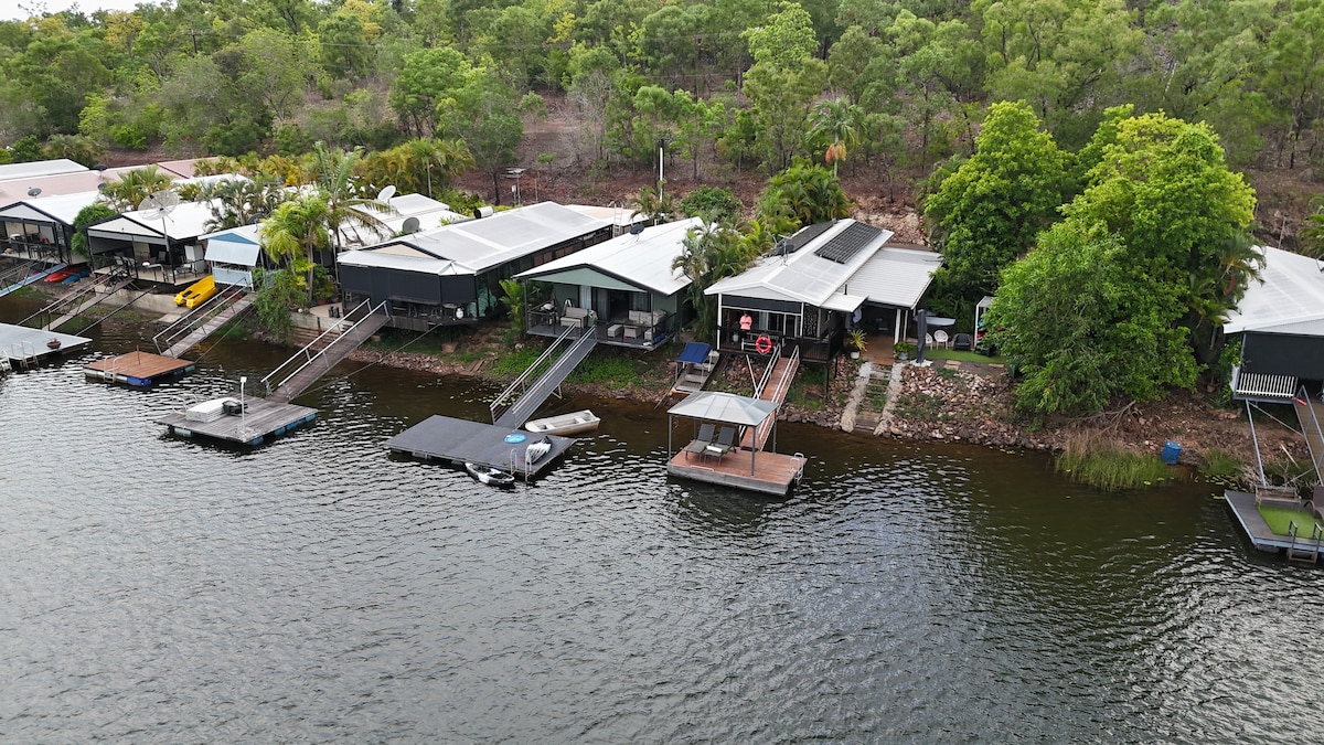 Enjoy your own private pontoon and relax with 2 x day beds and 3 x dining areas. Utilise a mixture of comfortable spaces to unwind, including a deck over the water. We provide Kayaks, SUPs, Bikes and a mix of water sports toys for all year-round swimming. Wi-Fi included. Cook on the BBQ or fully equipped kitchen. Comfortable beds and quality linen. 1 hours' drive from Darwin & 20 minutes' drive from the wonders of Batchelor and Litchfield National Park. Breathtaking views.