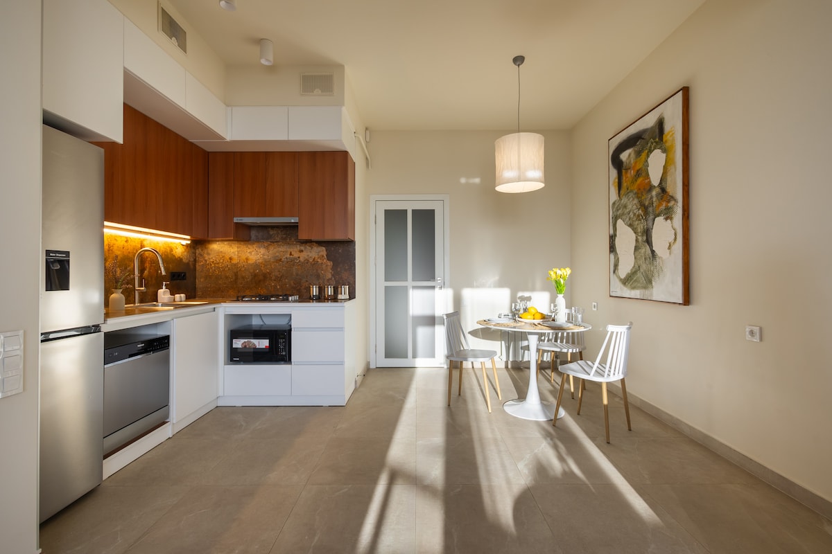 This unique place has a style all its own. ◦ 24/7 Self Checkin ◦ Designer Made ◦ Private second-floor entrance ◦ 93sqm ◦ Heated floors in kitchen and bathrooms ◦ Window shades ◦ Expansive outdoor terrace with a table and umbrella ◦ A/C + fan ◦ Smart TV ◦ Blazing-fast 350 Mb/s internet ◦ Fully equipped kitchen, complete with a dishwasher ◦ Washer+ Dryer ◦ Fresh Linens + towels ◦ Starter Luxury Hotel Toiletries Add my listing to your wishlist by clicking the ♥ in the upper-right corner: