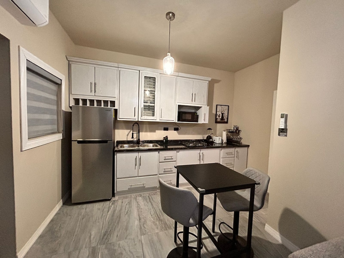 Discover our quiet set of private apartments, ideally located at the entrance to the city (Cd. Juárez) Located in a peaceful neighborhood, you'll be just minutes from the shopping area, surrounded by gyms, a baseball stadium, hotels, restaurants, convenience stores, hospitals, gas stations, and religious centers.