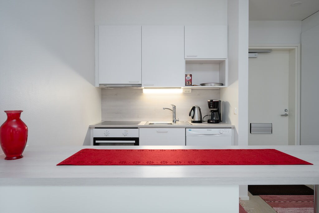 Modern top-floor apartment near Helsinki Airport (7 min by train, 27 min to city center) Train station just 20 meters from the entrance Sleeps 4 (160cm bed + 143cm sofa bed) Alepa grocery store downstairs (24h open) Mall, restaurants & pharmacy nearby (120 meters) WiFi & 65" smart TV Washer-dryer & dishwasher Essentials included (linens, towels, soap, shampoo, laundry detergent, coffee) Parking garage available (5€/night)