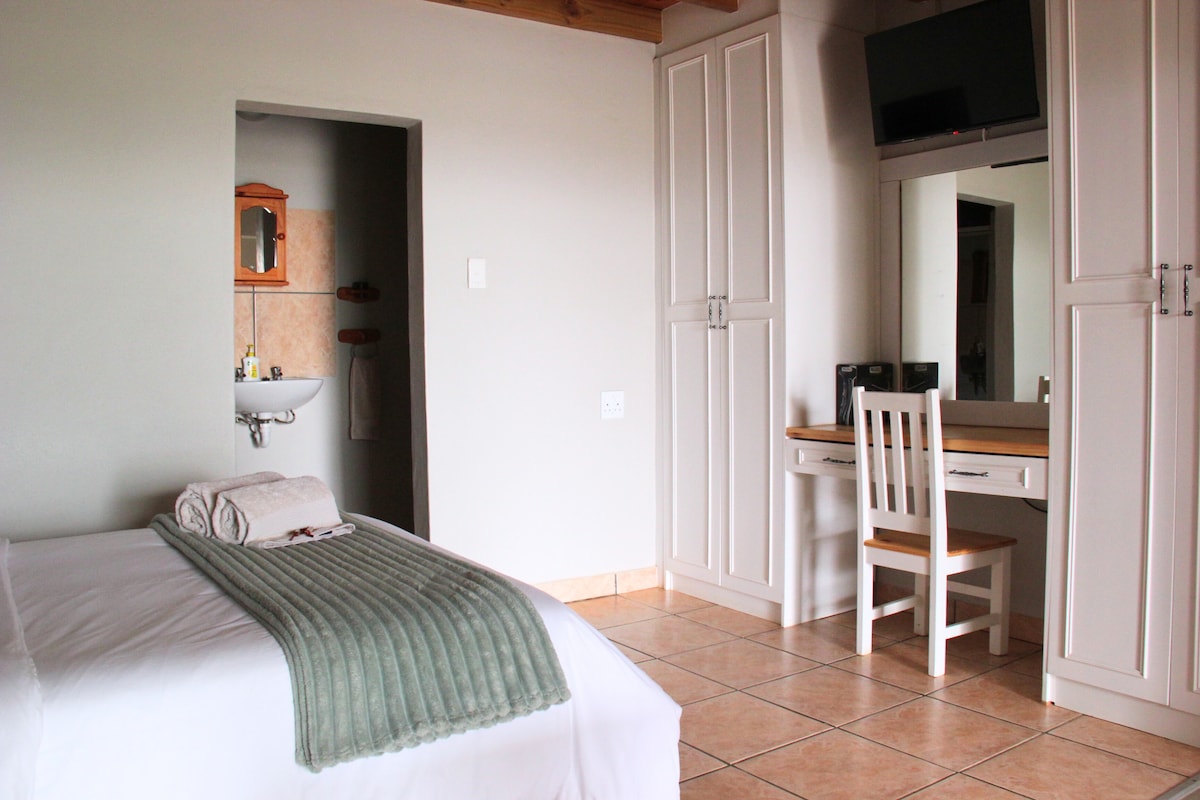 Comfortable and private open plan unit with beautiful views of a dam and the surrounding Maskam and Gifberg unit. This unit has a queen-size bed with an en-suite bathroom. There is a fully equipped kitchen, DStv and the unit has its own patio with a BBQ.