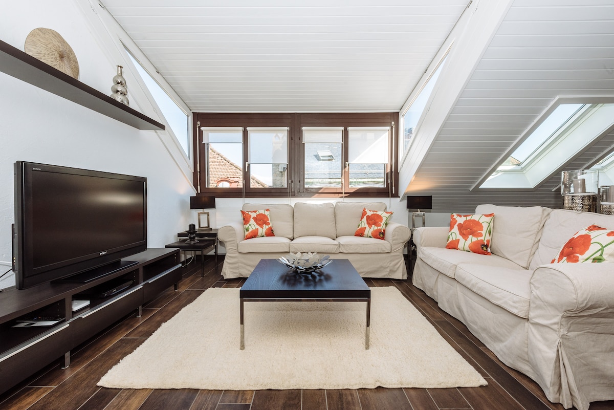 You might be visiting family, attending a festival, or on a business trip, anyhow, once you come in this 120 sqm apartment, it will give you a unique feeling of calm and tranquility. As it sits on the shores of the stunning Lake Geneva, come to its wooden balcony, to find the sun or the moon rising on the peaks of the Alps.