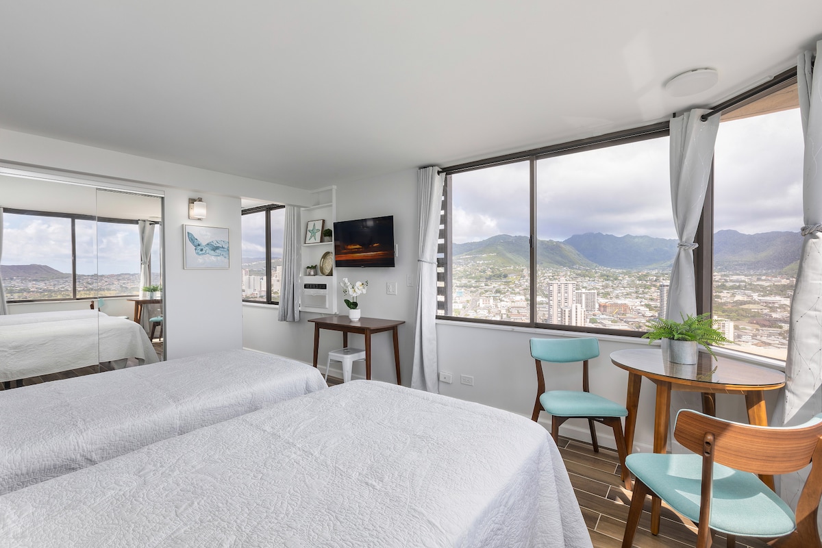Waikiki Studio, Panoramic View, Walk to Beach!
