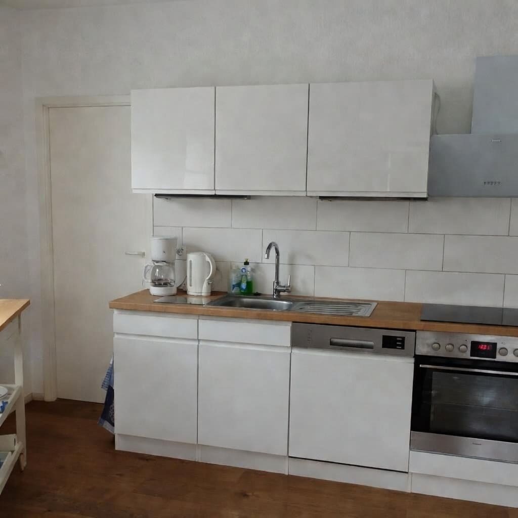 The apartment is on the first floor and is nice and cool in summer. It has been completely renovated and lovingly designed by us with a lot of craftsmanship. The wood workshop is in the house. (only as a hobby....no noise is to be expected)😉 The garden is a small oasis and in it is my florist workshop, which I run commercially. The rooms of the apartment are bright, spacious and friendly. Blackout blinds are attached. The kitchen is well stocked with everything you could ever need. As host, I live on site and am always available to answer any questions you may have. Books and games are provided.