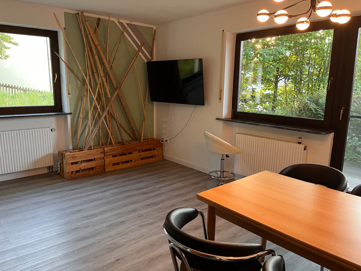 Lovingly furnished apartment in the heart of the Rhön. Freshly renovated bedroom (140 cm bed and wardrobe) as well as living and dining area with TV. Small kitchenette. Sofa bed as another bed. Bathroom with shower and bathtub. Linens and towels are provided free of charge. Free parking spot outside the house. Balcony available. Ideal starting point for excursions to the Rhön.