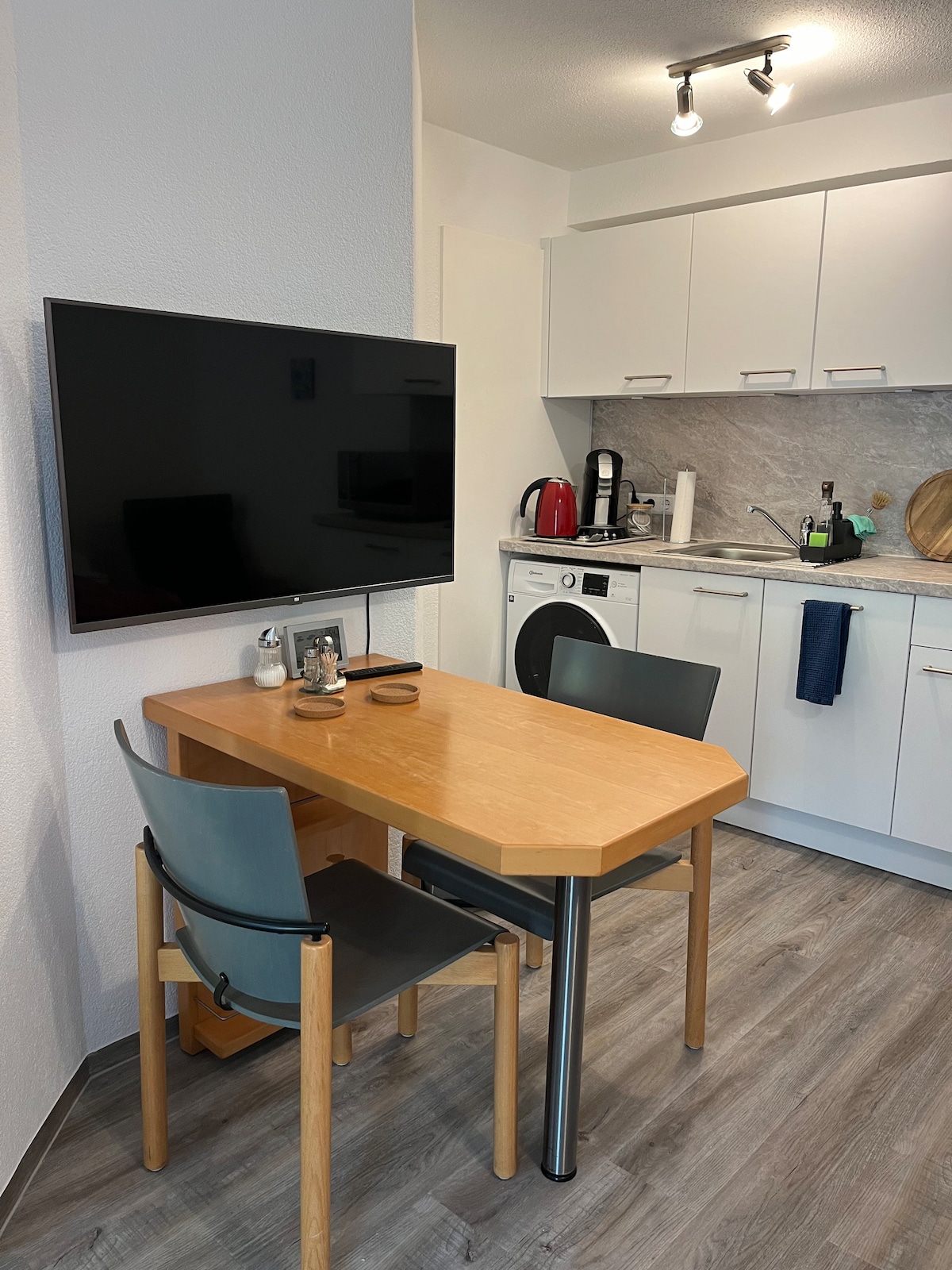 For your visit to Freiburg here is a cosy one-room semi-basement apartment with a separate entrance in a charming townhouse in Freiburg. The kitchenette is equipped with a two-burner induction stove, a dishwasher, a microwave, toaster, coffee pad machine, and a washing machine, as well as dishes, pots and pans. A table for two, a queen-sized bed, a desk for working, free WiFi and a TV with Netflix, Disney+ and Amazon Prime make your stay complete. One bicycle can be borrowed free of charge.