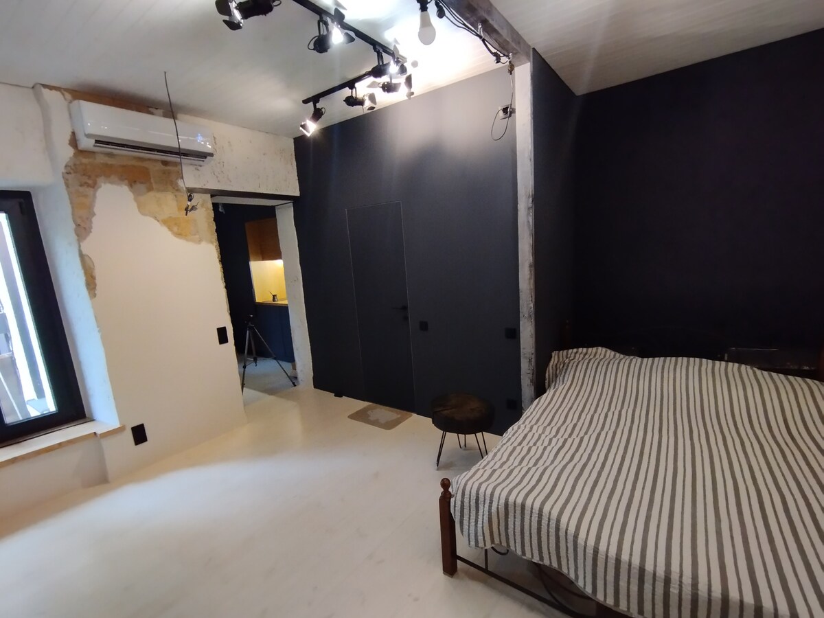 A stylish apartment in the center, designed in Scandinavian style with vintage furniture and modern art. It is located a 15-minute walk from the beach and 10 minutes from the central park, surrounded by many restaurants and bars. A pre-revolutionary building with a cozy Odessa courtyard. The apartment features a separate bedroom with a double bed and a comfortable sofa bed in the living room. The apartment is fully equipped with everything you need.