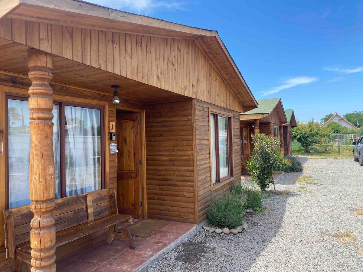 Cabins for 4 people, 2 hours from Santiago. Concept, relax and disconnect from work and noise, so TV is unnecessary. We have: Wooden games for children 2 trampolines 2 pools 1 hectare of garden 1 hill A barbecue hut with a ping pong table and table soccer. Visit Tinguiririca, a small town with good, simple and quiet people. *Note: the internet connection is unstable due to a hill that blocks the signal, but there is a sector with Starlink (satellite antenna).