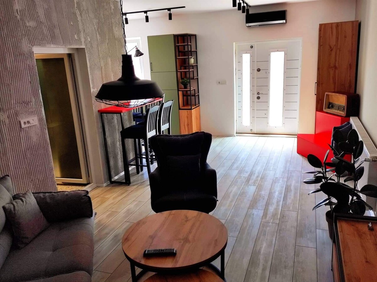 Bitrak House Megani features lake, city and mountain views, free WiFi and free private parking, located in Ohrid. Bitrak House Megani is equipped with a terrace offering lake and city views, a flat-screen TV, a dining area, a well-fitted kitchen and a private bathroom with shower, free toiletries and a hairdryer. A fridge is also provided, as well as a kettle. There is a garden with a barbecue, and guests can go hiking. The nearest airport is Ohrid Airport, 12 km from Bitrak House Megdani.
