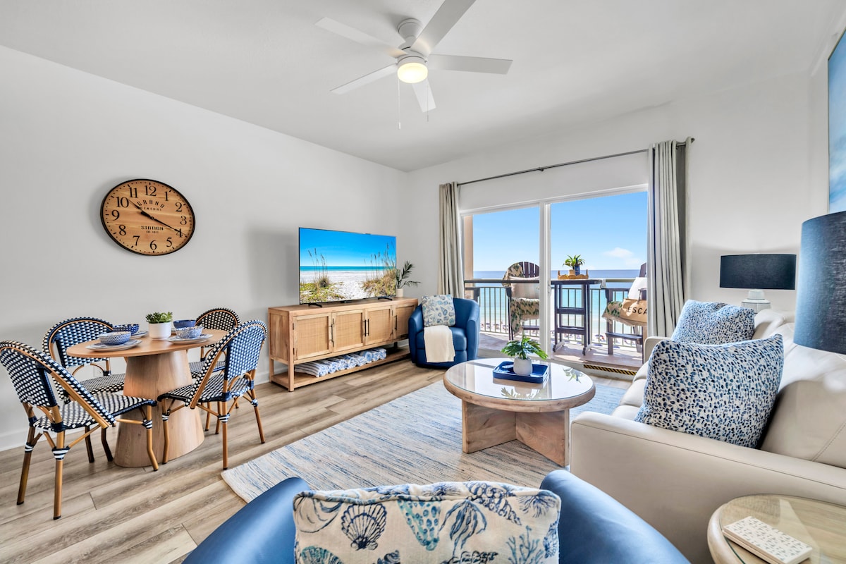 * Huge oceanfront lanai * Free beach service April 1-Oct 31 *Adult/Kiddie pool; tennis *Private office space in the condo *High chair/pack-n-play *Huge 1453 sq ft *Fully stocked kitchen incl. air fryer *Near Destin but WAY less crowded *South facing for sunrise & sunset (seasonal) & sometimes dolphins! *Open the door to your private lanai for REAL white noise of the ocean waves