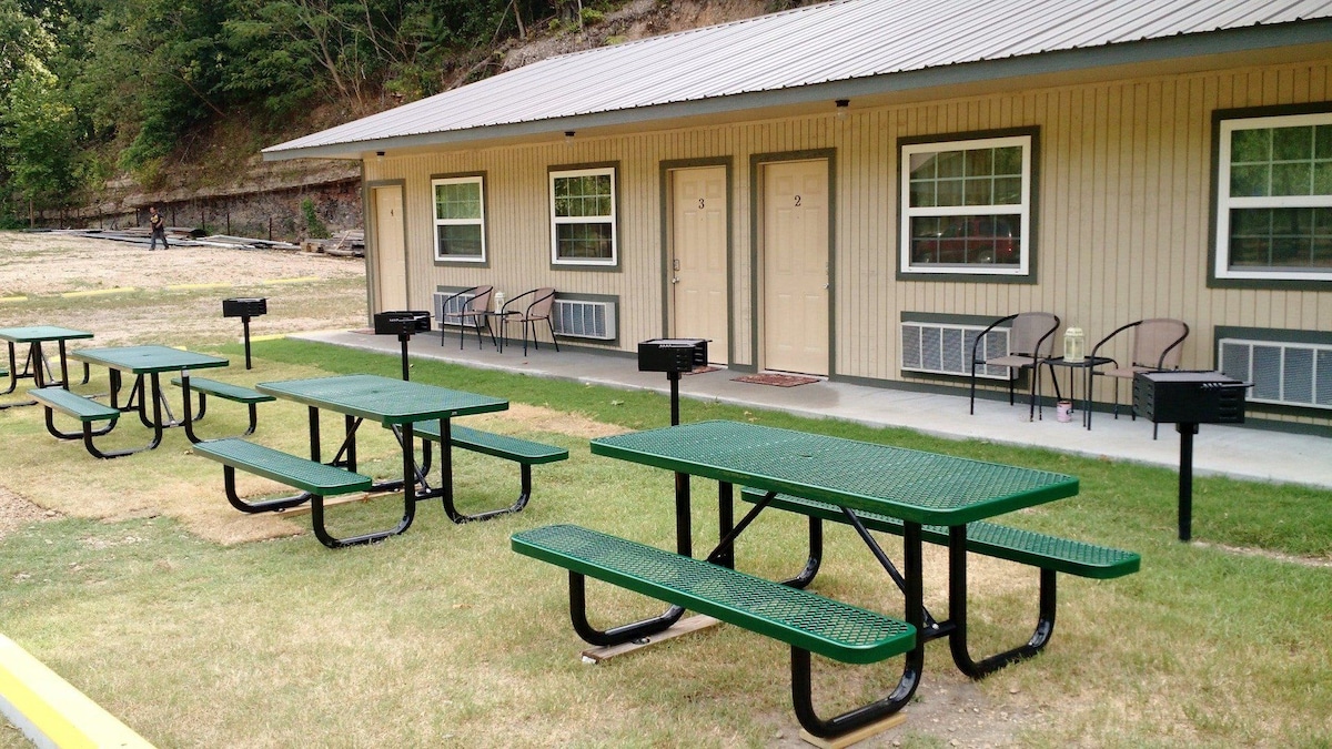 Our rooms sit on 37 wooded acres with 3 ponds. We're just minutes from Marinas on the Oklahoma side of Lake Texoma making us the perfect location for enjoying fishing, boating, and all the other activities Lake Texoma has to offer. Our accommodations feature 6 rustic duplex cabins, with a total of 12 cozy rooms. Each duplex shares a front porch, but the rooms are completely separate inside. Each room contains 2 queen beds, bath, mini-fridge, microwave, coffee maker, smart TV, and free WiFi.