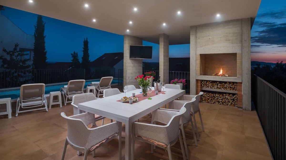 Upoznajte predivnu, potpuno renoviranu Villu Diamond, smještenu u slikovitom Okrugu Gornjem na otoku Čiovu, središtu dalmatinske ljepote. Udahnite miris mora, udaljenog samo 5 km od povijesnog Trogira i 28 km od živahne atmosfere Splita, dok zračna luka leži na samo 11 km udaljenosti.