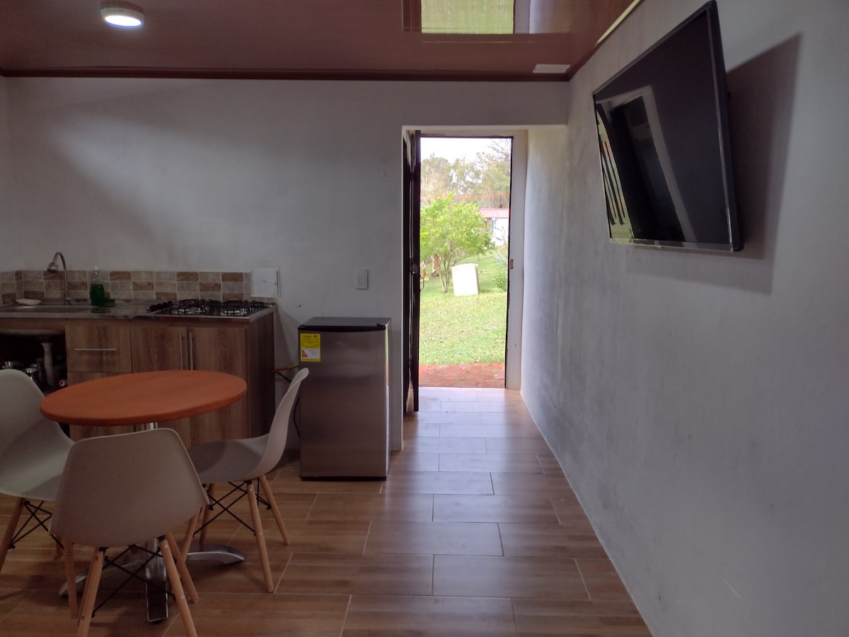 El municipio del Socorro, te permitirá disfrutar de este hermoso alojamiento rodeado de naturaleza, en donde podrás deleitarte con el canto de las aves y de los calidos atardeceres que esta tierra ofrece. Espacio para disfrutar en familia o amigos. Es un ambiente campestre rodeado de naturaleza sin alejarse del sector urbano, cerca a la vía nacional que comunica con Bogota, facilitando el acceso. Con disponibilidad hasta para 5 personas. Posibilidad de mascotas pequeñas .