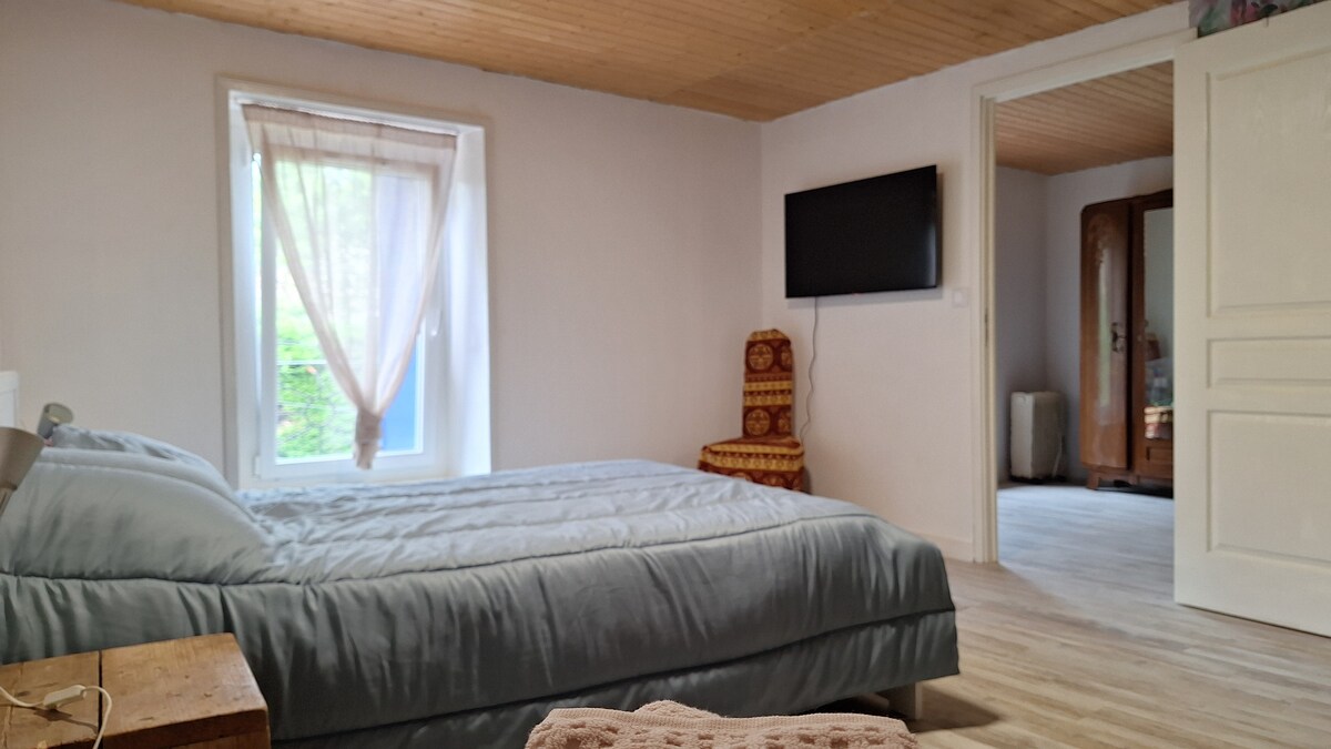 House 65 m² in the heart of the Livradois Forez Natural Park - New - Terrace 15 m² with awning + 200 m² enclosed garden - Pets accepted (1) Upstairs: 1 Bedroom with Claustra - 15 m²- 1 Double bed 140 * 190 1 Bathroom Living Room: Equipped kitchen (Cookeo, split lid, but works perfectly) Sofa Bed 2 People 140x190 Raclette machine Linen provided (Sheets, Bath ) No wifi TV-TNT sat Floor Attention low beam ascent/descent + step