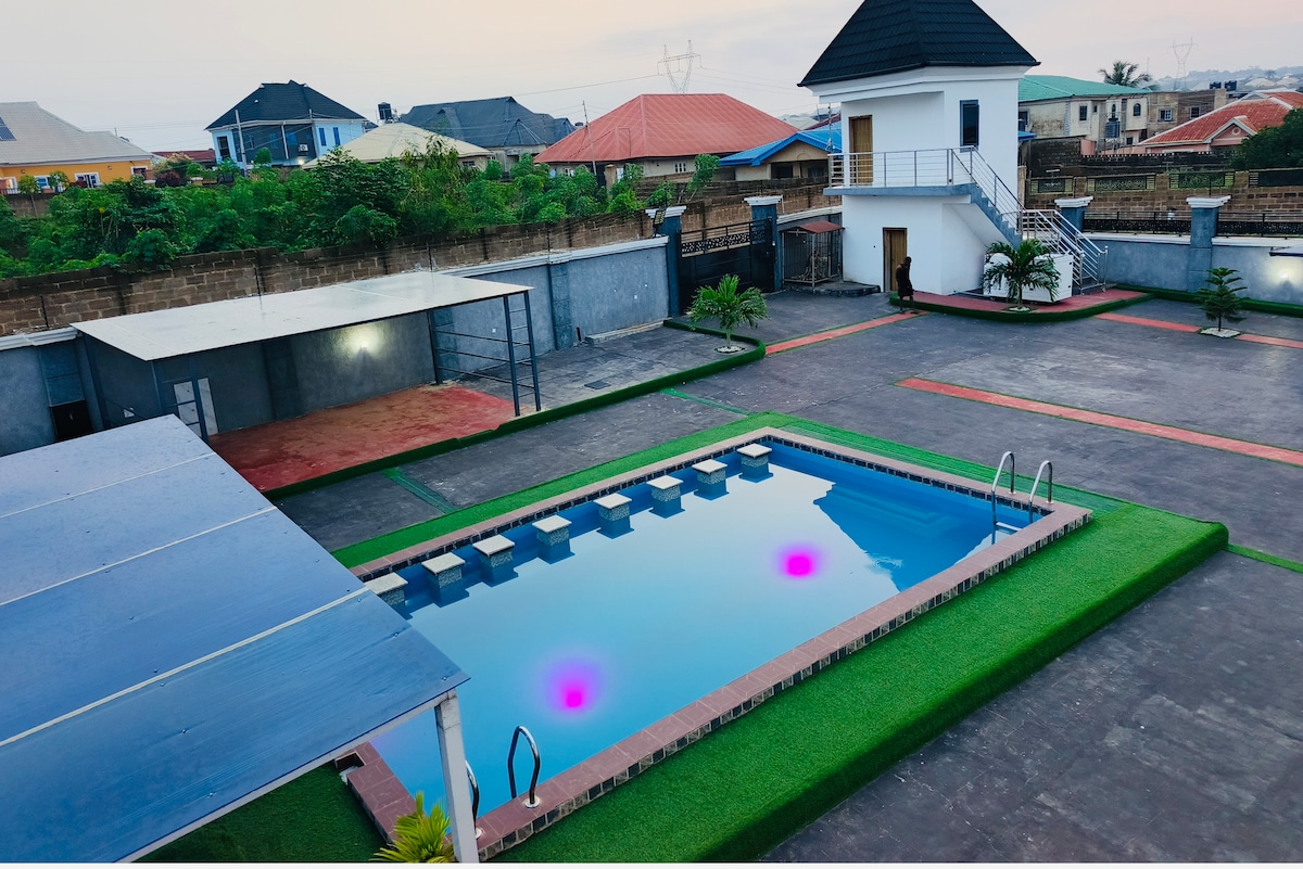 This stylish, modern 2-bedroom apartment is a perfect retreat for families, couples, or business travelers, offering a private pool, pool table, designer interiors, and high-speed WiFi with 24/7 power for a seamless, entertainment-filled short-let stay.