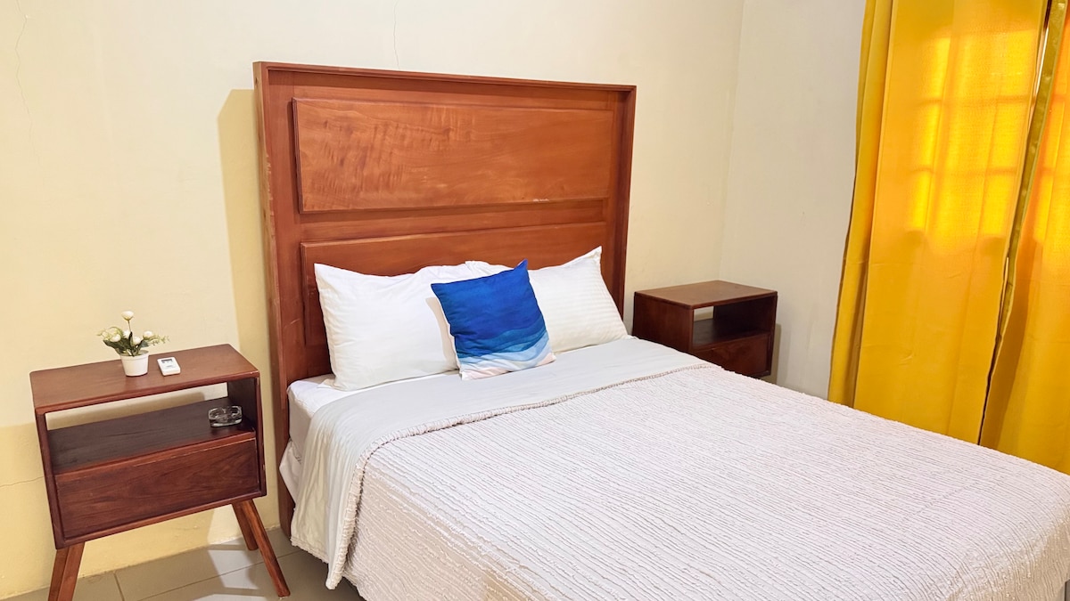 Contamos con 7 habitaciones, 6 de ellas con baños privados. 5 habitaciones disponen de aire acondicionado (con costo adicional) y 2 con ventiladores. En nuestras instalaciones se incluyen una piscina, internet de alta velocidad, acceso a cocina, y un área de descanso con hamacas. Disfrute de nuestras amplias zonas verdes, comedor y pasillos. El establecimiento ofrece un amplio y seguro parqueo, así como un muro perimetral para garantizar la seguridad de nuestros huéspedes y sus vehículos.