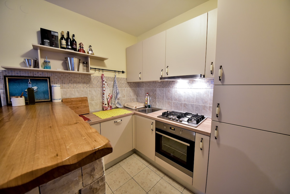 Spacious large apartment, perfect for families, with a big green garden. This accommodation is located near Zadar and other must-see tourist spots. It is a perfect place to explore the beautiful Croatian region of Dalmatia. It includes, among other things, a kitchen, a barbecue, two bedrooms, and air conditioning. The nearest beach is 400m away. The village is 7.6 km from Zadar Airport. Feel free to contact us for more information.