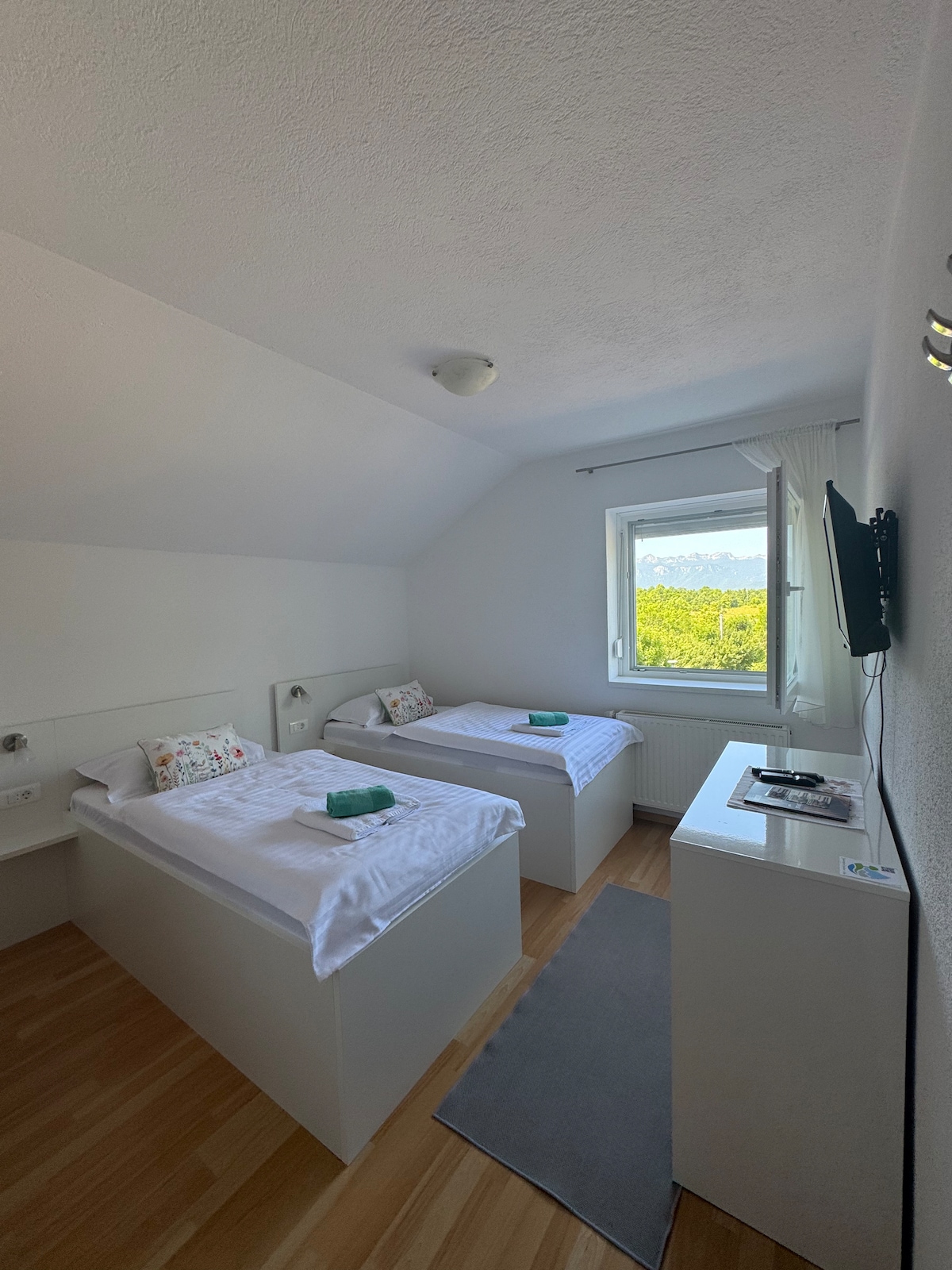 The Velebit Lodge vacation home was completely newly renovated in 2020 and is located directly by the Velebit Nature Park. Enjoy magnificent views of the majestic Velebit Mountains. The house has 3 bedrooms with 2 single beds each which you can push together to form a large double bed, 3 bathrooms with toilet, a spacious living area with additional sofa bed and fireplace, as well as a fully equipped kitchen and dining area for 8 people. Parking in double garage.