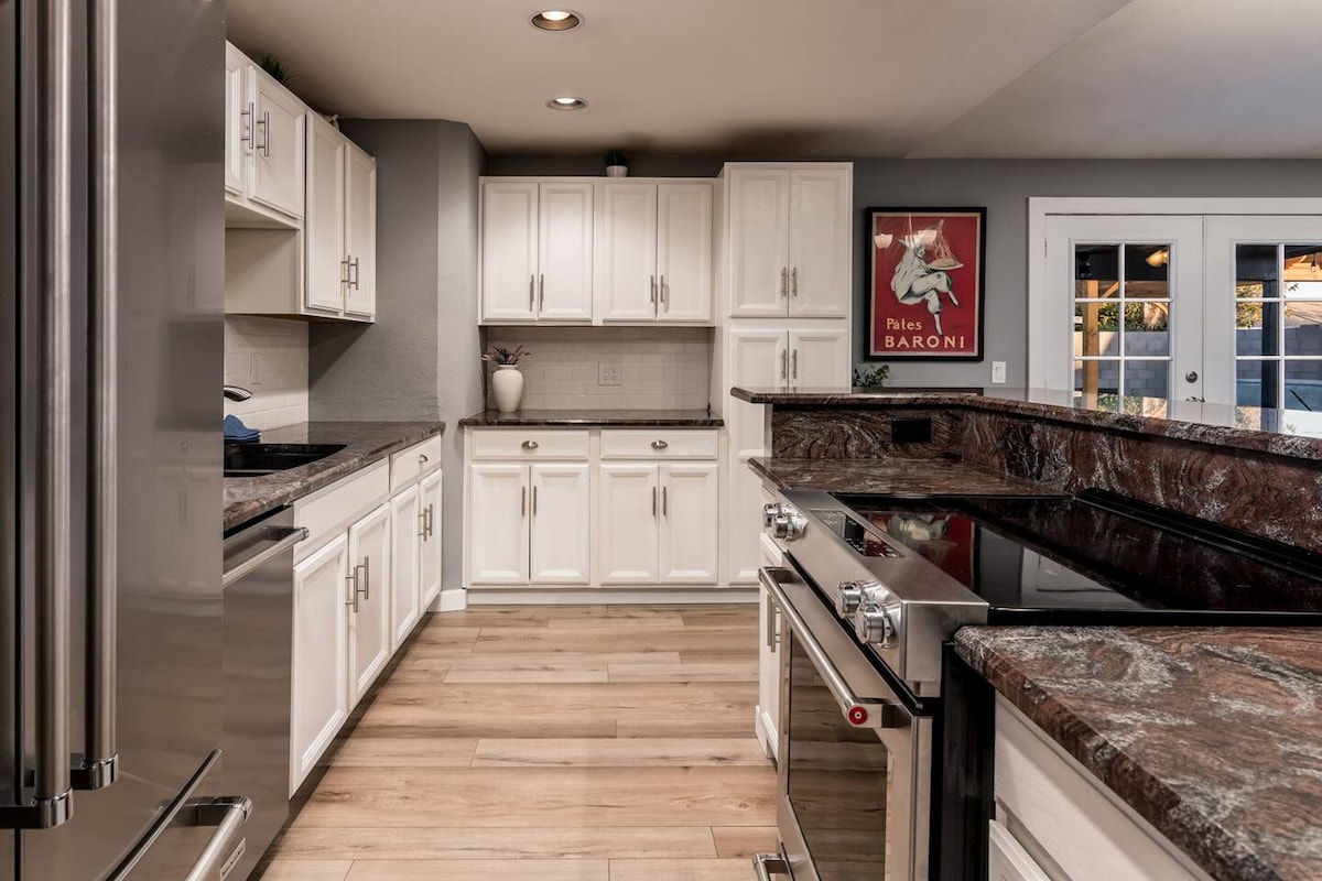 Near Mayo Clinic Hospital, located in a quiet neighborhood in Paradise Valley Village, our fully remodeled home, offers the perfect stay for couples, families, or business guests. Enjoy fast Wi‑Fi, a dedicated work room, washer/dryer, FREE parking with RV gate, and a gourmet kitchen. Relax after adventure in the expansive backyard with cornhole games, or binge shows on the 75″ TV. Minutes from hiking, golf, dining, and Phoenix attractions. 15 min/11 miles to Airport —your desert getaway awaits!