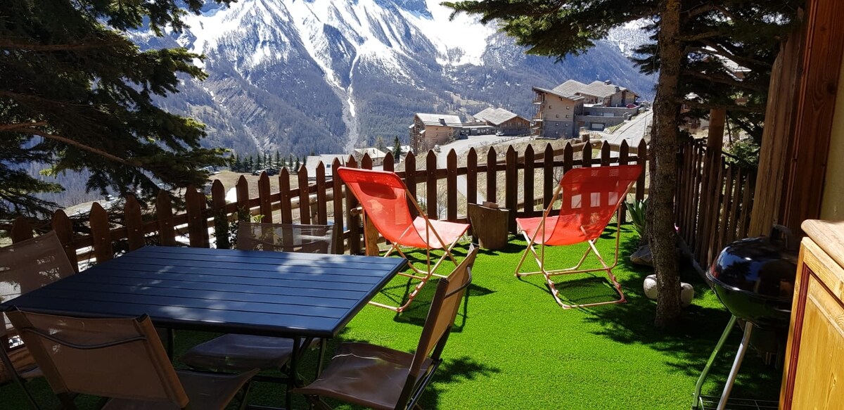 Cozy studio for 5 people in Orcières Merlette, slightly off-center, quiet, with escalator nearby for direct access to the resort center. 5 min walk to the Piou-Piou garden, ideal for families. Enjoy mountain views, a sunny balcony, well-equipped, close to the shuttle and slopes. Perfect for a ski, hiking or relaxing stay. 🗓️ Note: During the Christmas holidays, New Year and the 4 weeks of February, bookings are only from Saturday to Saturday.