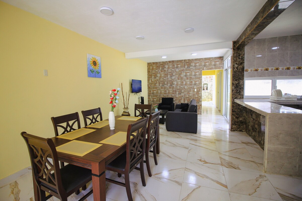 Relax with the warm weather and beautiful views of Pico de Orizaba in our comfortable and cozy house, located in one of Mexico's best magical villages. It is located 5 minutes from the Aeroparque and the Cerritos Market; 8 minutes from the North entrance of Paseo del Río; 10 minutes from the shopping mall, the Dinosaur ExpoParque, the Parque de las Sonrisas, CasaVegas, the Planetarium, the Tobogán de la Montaña, the Torture Museum and the Jardín de Dragones