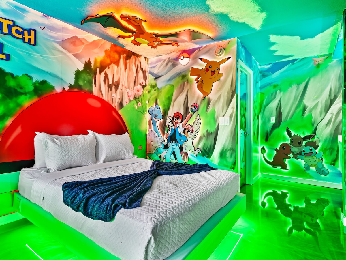 🏝️ Welcome to Themed Retreat Villa – A Family-Focused Escape Near Orlando 🌴Pet Friendly Step into a one-of-a-kind family vacation experience at this 4- edroom, 3-bathroom themed villa—nestled in the same sought-after neighborhood as Blue Paradise Villa. Designed for fun, comfort, and unforgettable memories, this home offers a fully immersive stay with four uniquely themed bedrooms: 🎥 Avatar 🌿 Jungle Cruise 💚 Shrek 🌊 SpongeBob SquarePants