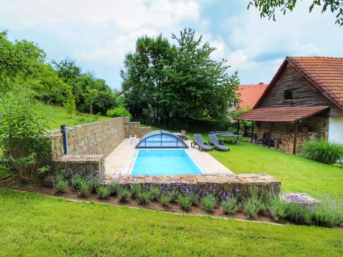 Beautifull place with amazing view suitable for private relaxation. Romantic, also with children, quiet and rest on the countryside. Private pool, whirpool, sauna, terace with view anytime, included in the price.