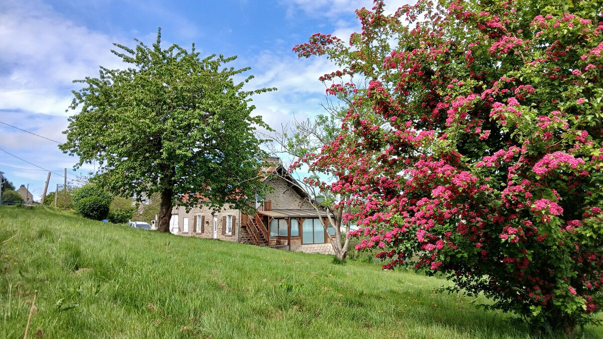 Halfway between Mont St Michel and the Loire Valley castles! On a hiking trail, you will be comfortably housed in the quiet of the countryside and in complete independence. You will have at your disposal a nice living room with 1 sofa and 1 table, 2 bedrooms as well as a bathroom. You will have a private terrace facing the pastures. Alone, as a couple, with your children or a couple of friends, we will be happy to welcome you and offer you a breakfast with our homemade products.