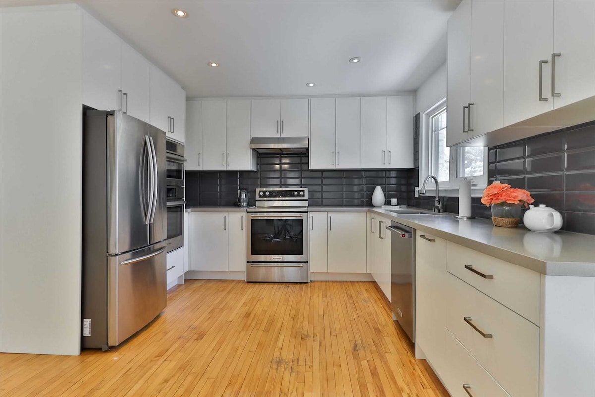 Why you will love your stay here: - ***ENTIRE HOME*** No one will be on the property but those on the booking. This is a DETACHED house. No connecting houses. - Open concept on the main floor so you can connect and create memories - Dedicated work from home spaces . Cat 6 ports -The 2nd floor has 4 different rooms where you can unwind and take a much deserved break - 10ft ceilings on a corner lot with lots of sunlight - Central Hub to Toronto (45 min drive)