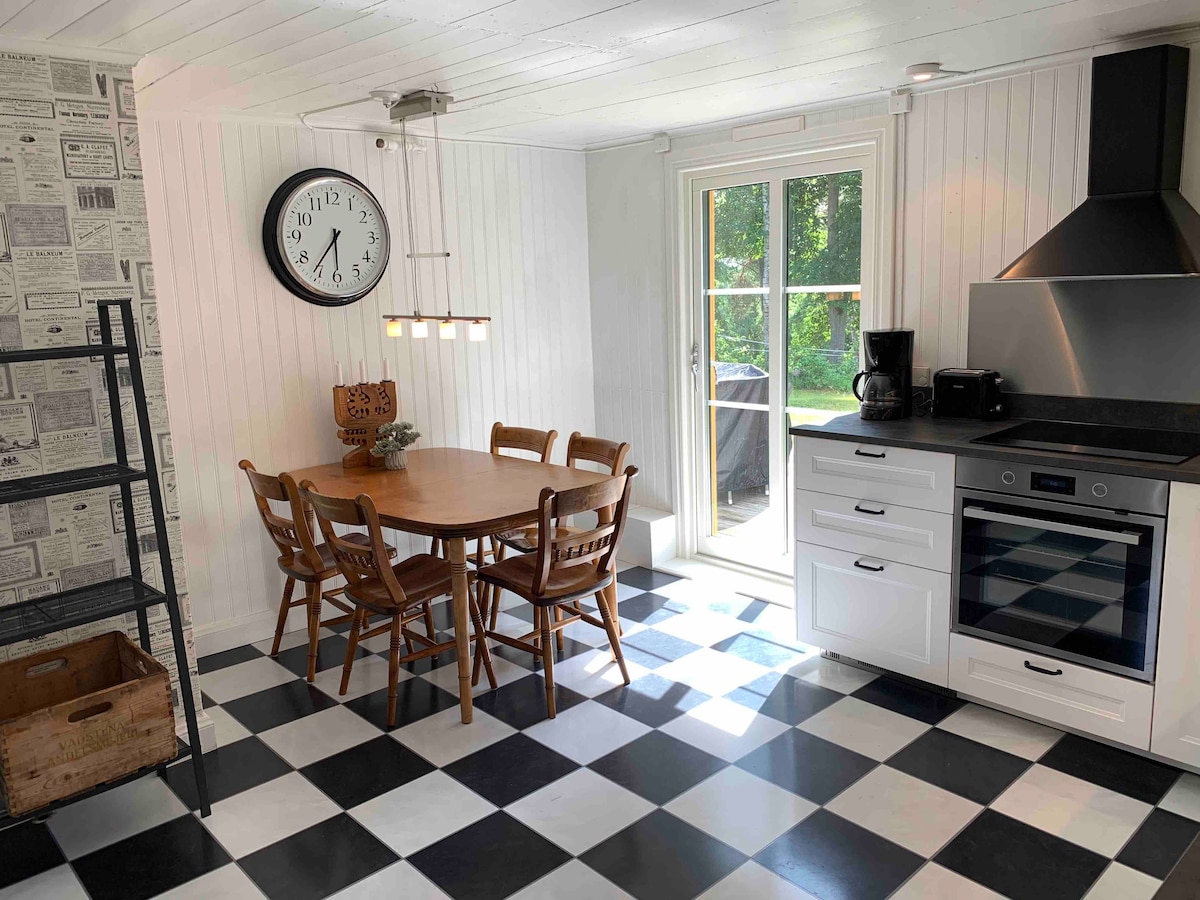 Welcome to Snickargården in scenic Stora Mosshult, Tiveden! Here you rent a charming newly renovated house built in 1886 with room for up to 8 guests. In the house, there are all the amenities of our time but with saved details from the past. Hiking trails and swimming lake are within walking distance. Tiveden's attractions are within walking distance and can be reached by bicycle or car. Bed linens, towels and final cleaning are included. Regrettably, we cannot accommodate pets, as many of our guests are allergic to fur.