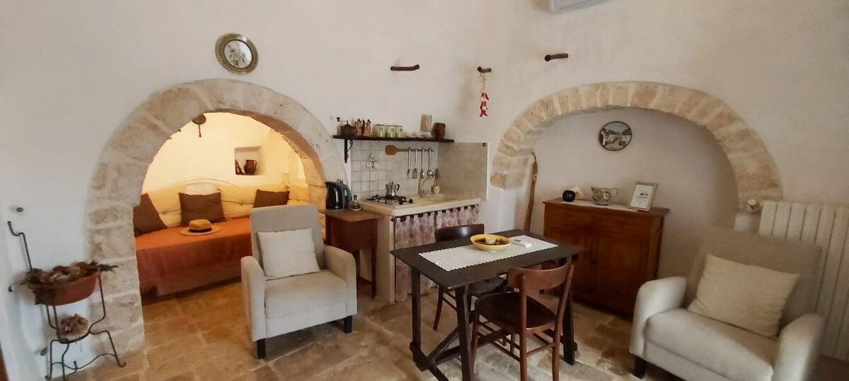 In the heart of the picturesque Itria Valley, in Cisternino, you'll find a charming cluster of 19th-century trulli, carefully restored in keeping with local tradition. Set within an authentic courtyard and surrounded by ancient olive trees, they offer a unique and genuine experience. Here, among the timeless beauty of stone and the everyday life of the Apulian countryside, you’ll enjoy a truly authentic stay, immersed in the culture and rhythm of the region.