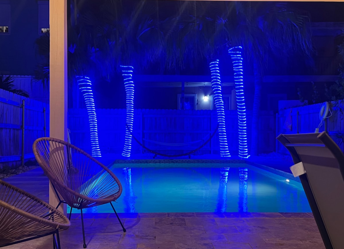 Welcome to Brock's Beach Pad! - your private retreat offering everything you want in a Port A vacation! ~Brand-new 4 bedroom home with full kitchen, private washer/dryer and all the comforts of home ~Private deck with Gulf views! ~Gorgeous PRIVATE swimming pool! ~Easy beach access! The Beach walkover is just steps away ~Beach walkover is golf cart friendly to cruise on and off the beach ~Wonderful entertainment options - 3 arcade machines and outdoor games such as cornhole and connect 4