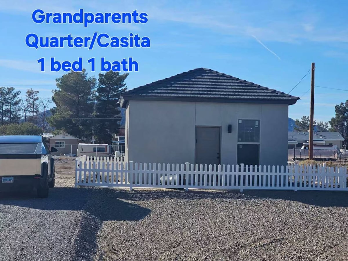 This private studio is located in the backyard of a property on 1 acre. It's equipped with WIFI, coffee maker, mini fridge, microwave, dedicated workspace, smart tv, grill area, dog play area , RV PARKING, bathroom with walk in shower and cozy queen bed. Located approximately 60 miles west of Las Vegas and 45 mins from Death valley, conveniently situated between the vast expanse of the Mojave Desert and the majestic Spring Mountains, providing visitors with an abundance of outdoor adventures.