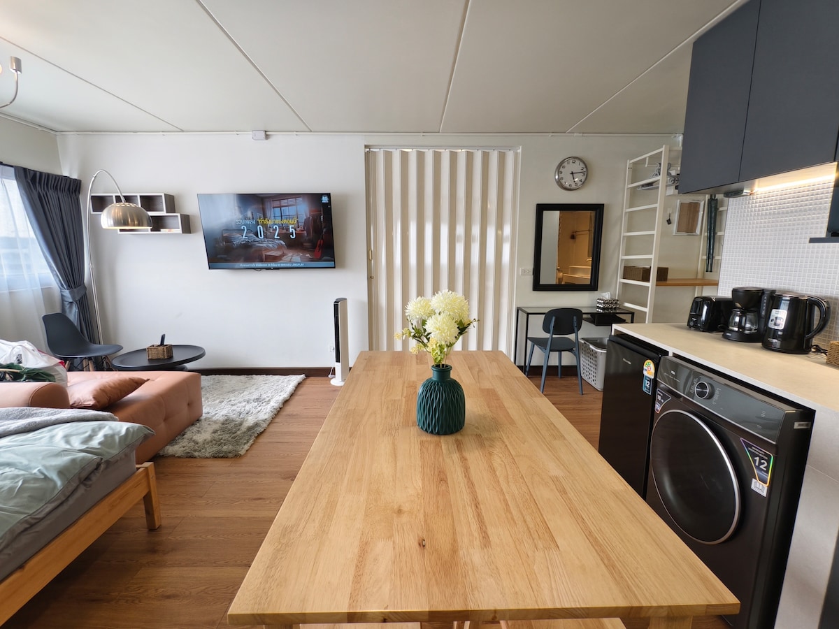 Clean king size bed, 200m from MRT Pink line stn.