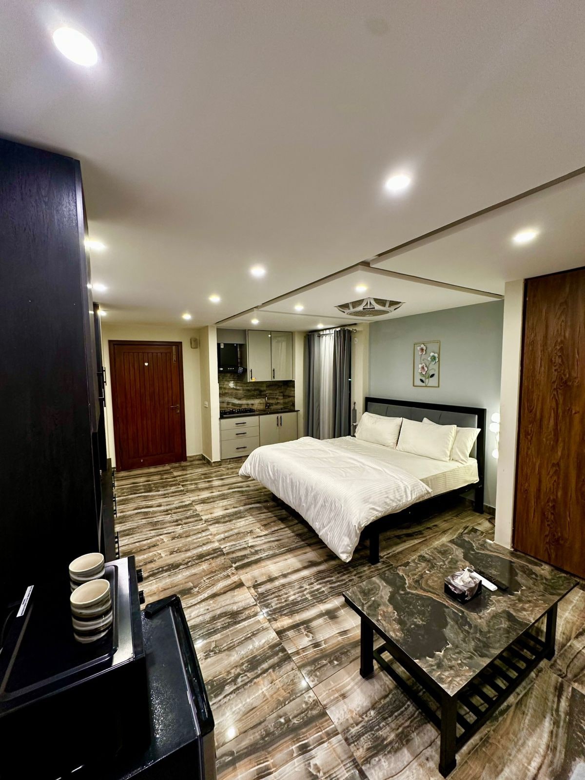 Warm Welcome to our luxurious one-bedroom apartment in the heart of DHA Phase 4! With its stylish interior and top-notch amenities, the apartment is the perfect home away from home for your next trip. From the comfy king-sized bed to the fully equipped kitchen, we've got everything you need to feel comfortable and pampered during your stay. Plus, our convenient location makes it easy to explore all that [city/town] has to offer. We can't wait to welcome you!