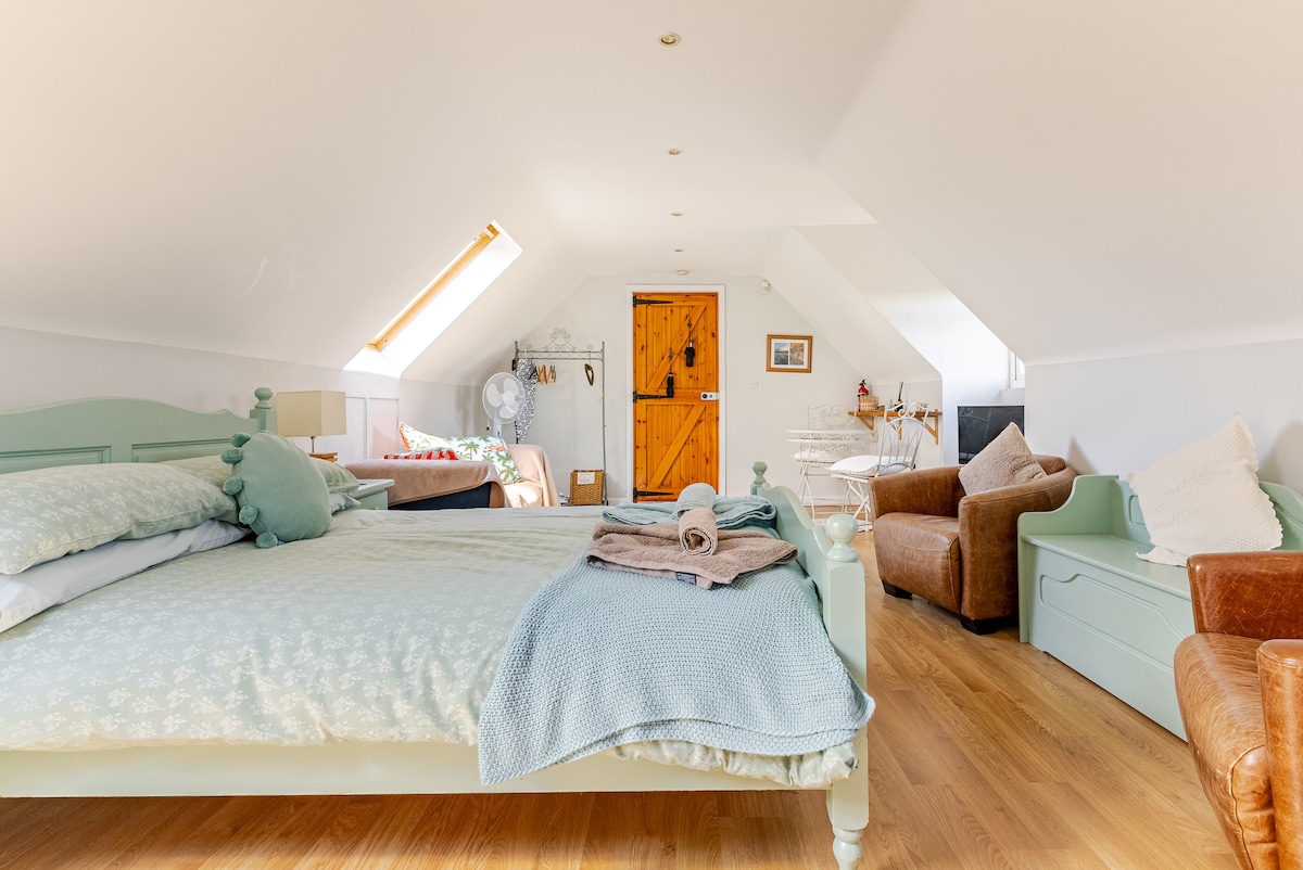 New Forest at it’s best. Peaceful base to explore NF. 2 king-size beds (one is a 4-poster, the other a sleigh bed) A single bed can be added easily, upon request. Kitchenette has sink, micro, mini-fridge, toaster, kettle. Walkable to 2 pubs, Monty’s in Beaulieu & Royal Oak at Hilltop. Fairweathers (walkable) does brekkie. Private access is via spiral staircase to rear of house, not for those with accessibility issues, but it's fine to use internal house stairs. All dogs welcome, no extra charge.