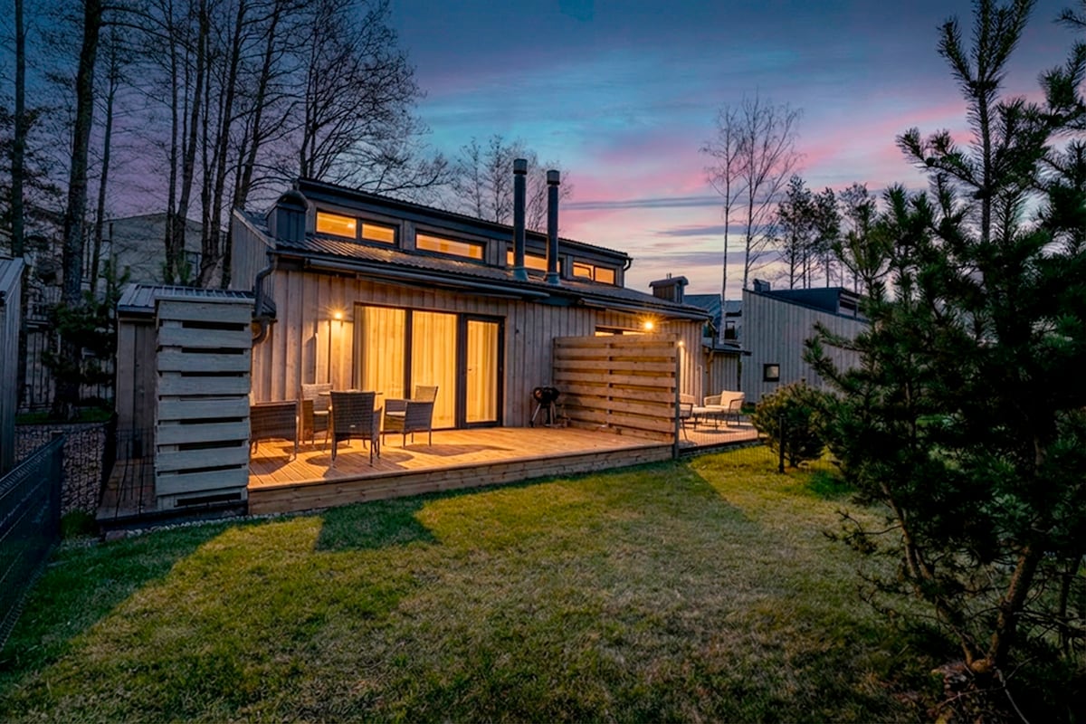 Namelis išplanuotas per 2 aukštus su mansarda, kuriame gali apsistoti iki 8 asmenų. Tai visiškai naujai, prabangiai įrengti atostogų namai. Šiuose namuose jausitės kaip namuose, rasite viską tobuloms atostogoms (indaplovę, orkaitę, skrudintuvą, šaldytuvą su šaldymo kamera, plaukų džiovintuvą, lygintuvą, lyginimo lentą, bevielį dulkių siurblį, 4 TV, oro kondicionierių, skalbimo mašiną su džiovykle ir visus buičiai reikalingus reikmenis). Visame name veikia bevielis internetas.