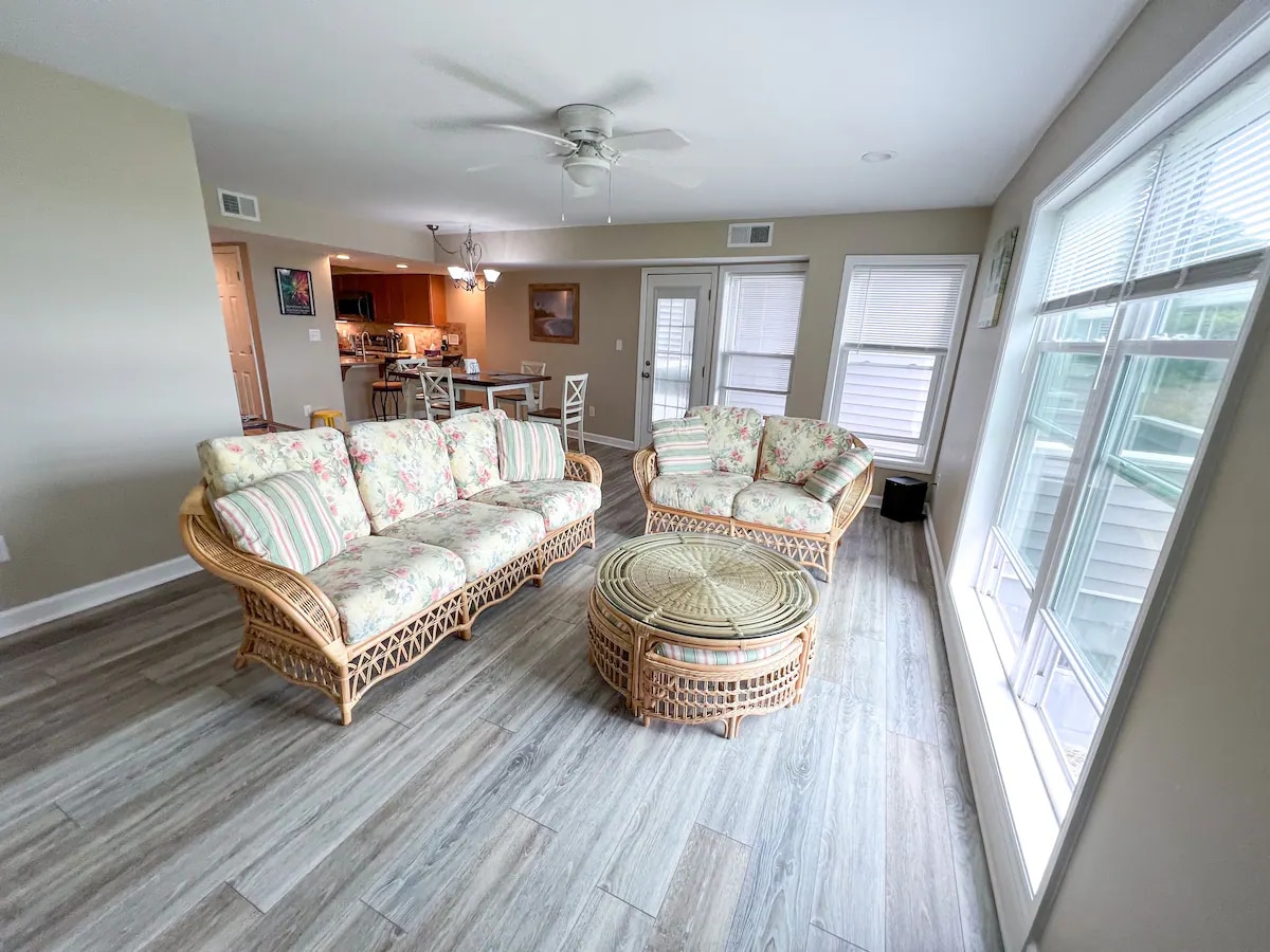 Fairfield Harbour condo that overlooks the Neuse River and has easy access to Historic New Bern. Experience a wide array of attractions such as our colonial history and the first capital at Tryon Palace; birthplace of Pepsi Cola; Civil War Battlefields; museums; eclectic downtown New Bern shops and many savory restaurants. Fairfield Harbour is close enough to be convenient, but quiet enough to be restful. Access to the community recreation is center included with your stay.