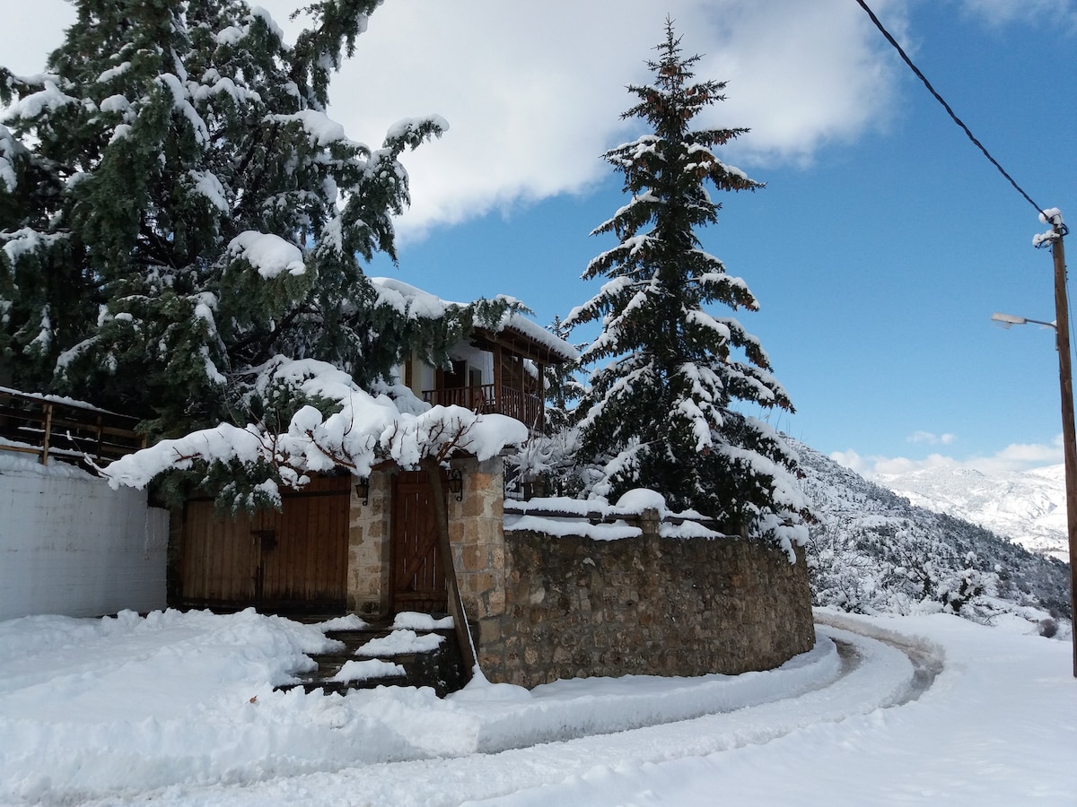 Traditional stone house in the middle district of Trikala, at an altitude of 1,100m. It has a bedroom and living room with fireplace, kitchen with dining table, bathroom and enclosed wooden balcony with unlimited view. It is an ideal winter destination since it is only 10km from the ski resort of Ziria.