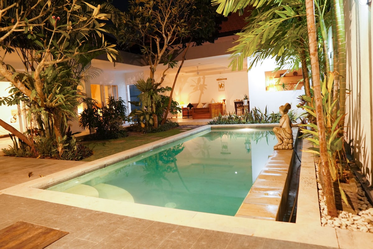 A beautiful 2 bedroom private villa with serene garden and lush swimming pool. Each bedroom has king size bed 180x200 with AC and ensuite bathroom, a bath tub provided in master bathroom. Treviso villa coming with spacious living room, dining room and complete kitchen with cooking utensil. Wifi is provided on entire villa. Cafe Del Mar, Mexicola club, Watercrest Cafe, Wild Hog, Batu Beliq beach is just on walking distance. Airport is 25min away Villa is on 400Sqm land. Small heaven in Bali