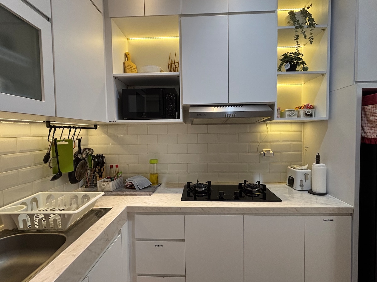 Enjoy a stylish experience at this centrally located venue. Comfortable house on the 2nd floor, has 2 rooms with single beds, 2 bathrooms in each room, 3 AC units. Apart from that, our location is only 10 minutes from KCIC Tegalluar Station, Summarecon Mall, Al Jabbar Mosque, and many more.