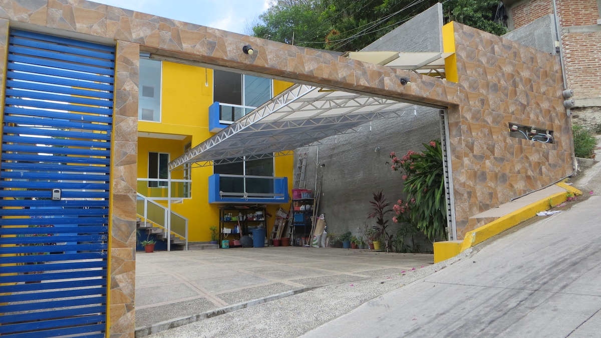 An ideal space with security cameras, front and back patio, air conditioning, screens, fans, parking for 3 vehicles, kitchen, electrified, living room, dining room, garden, wifi that will make your visit a unique experience.