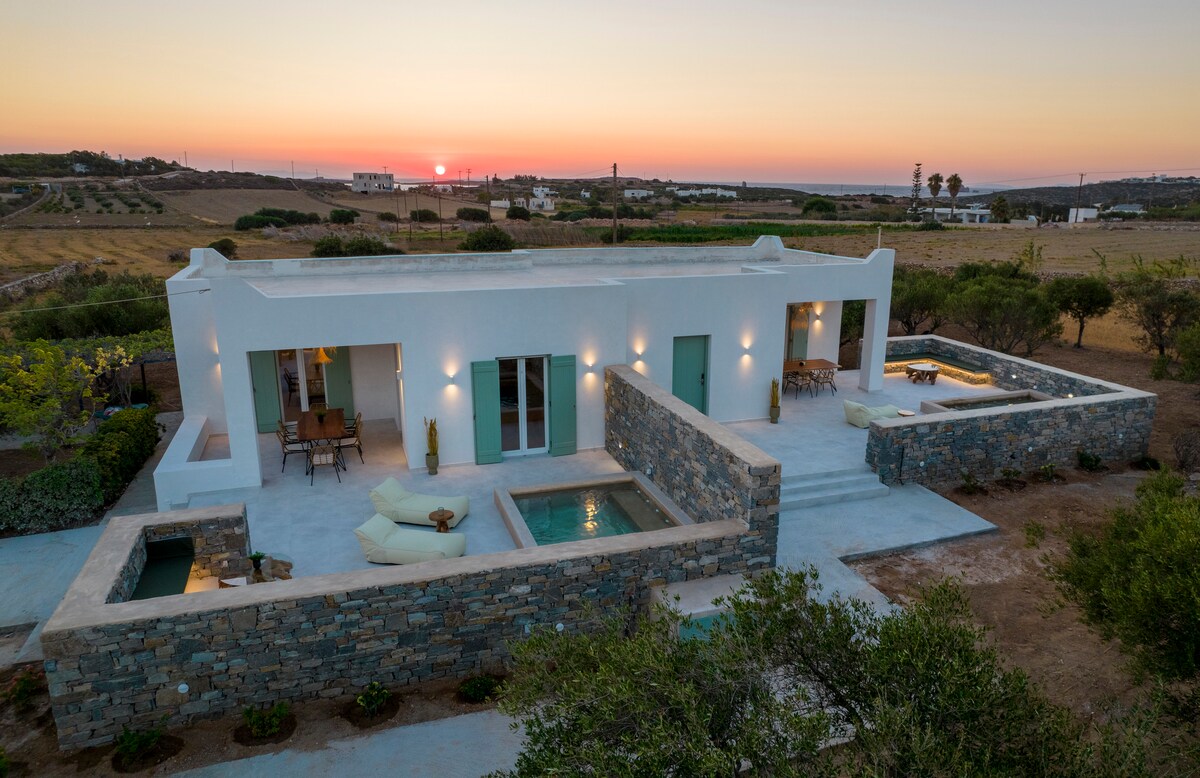 Villa Arismari is located on a serene hillside, surrounded by natural boulders, overlooking the beautiful coast of Orkos. We have a breathtaking panoramic view of the Aegean Sea and our neighboring island of Paros. We are situated between the main beach and smaller bays of Orkos. While enjoying the view that Villa Arismari offers prepare to take your most incredible selfies . Villa Arismari is a beautifully designed villa of Cycladic minimal architecture.