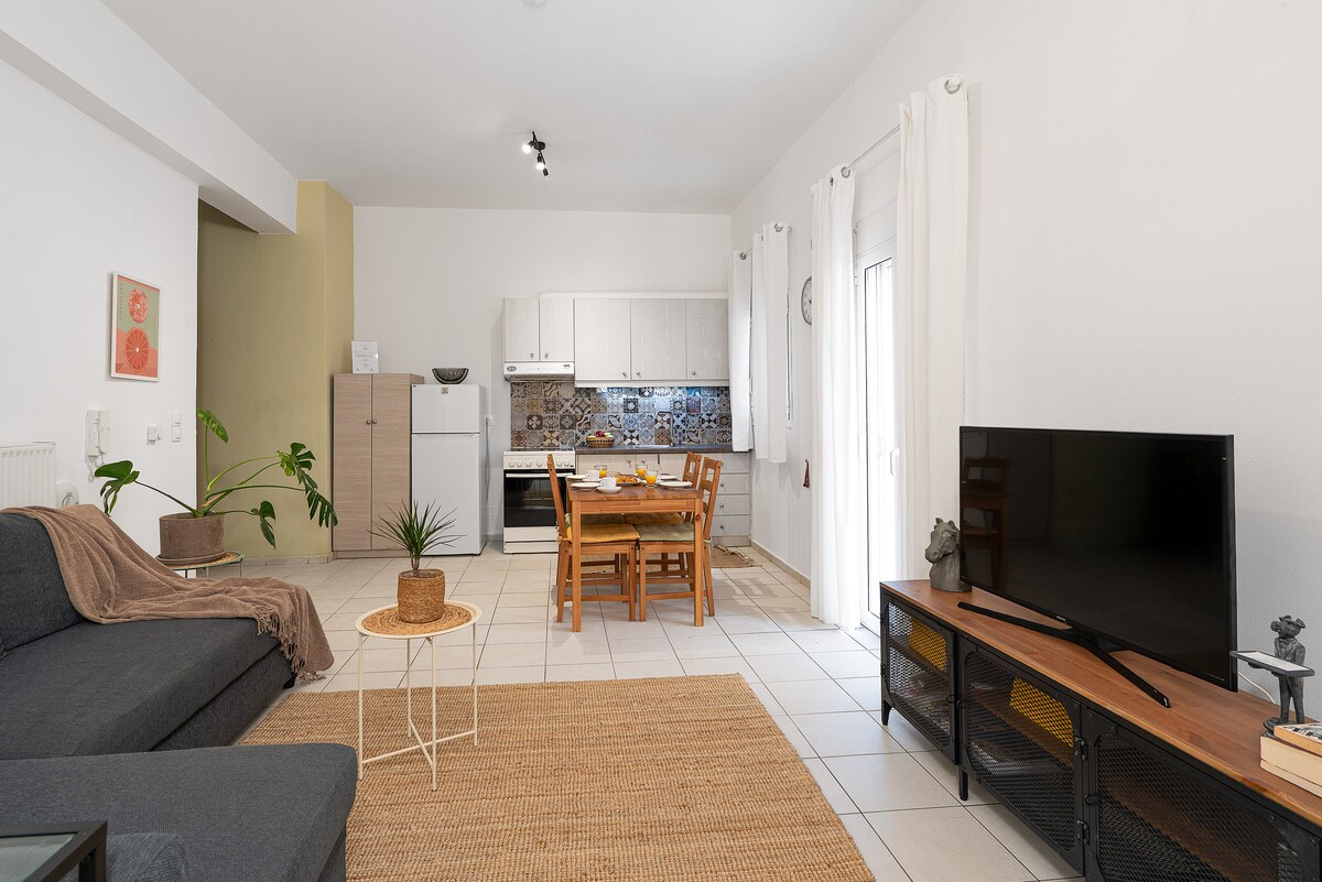 Relaxo I, is located in the heart of Heraklion, 1 minute walk from The Lions Square. The apartment is brand new inside, covers 54m2 and features modern amenities, including air conditioning, 65'' smart TV, Nespresso coffee maker, self check-in, high-speed Wi-Fi and a fully equipped kitchen. The bedroom has a king size bed (180x200cm) ensuring a restful sleep. Relaxo is ideally located close to local attractions, restaurants, cafes and shops, allowing you to easily explore and enjoy the city.