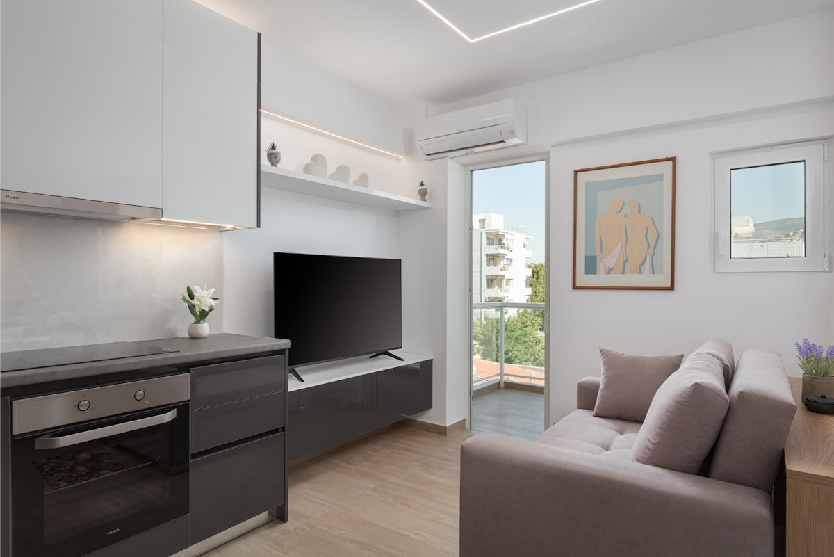 Our boutique studio (24 sq meters) on the 4th floor is perfectly located by the sea in the prestigious area of Voula, with an amazing view over the Saronic gulf even from the comfort of your bed! Its ideal location gives you the opportunity to enjoy a variety of beach places and also provides you easy and fast access to public transportation. Fully renovated in 2019 is aiming to make your stay very comfortable and enrich your travel experience! Ideal for couples, friends or business travelers.