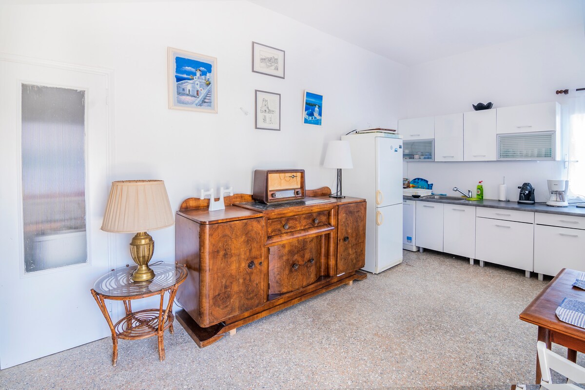 It's a cozy vacation home that can comfortably accommodate up to 7 people. The house has a panoramic view over the infinite blue of the Aegean Sea. Our home is ideally located if you are seeking to relax and discover the island of Andros. It’s located in a peaceful spot in the area of Agios Petros that is only 6 minutes away from some of the most beautiful beaches and the port of Gavrio. We are always glad to assist our guests so that they can explore the little gems of the island.
