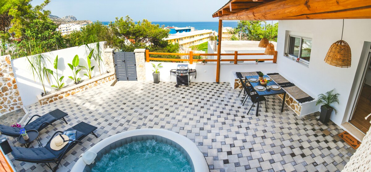 For availability on First Floor please check: airbnb(dot)com/h/blue-bay-villas-first-floor-stegna-bay --- Blue Bay Villas( ground floor ) is a property , occupying 72 square meters , standing over the Bay of Stegna at Rhodes Island, Greece. It is a , 200 meters from the beach , new construction(finished on March 2020) with all of the equipment needed for a comfortable staying in a quiet environment , ideal for a pleasant family vacation .